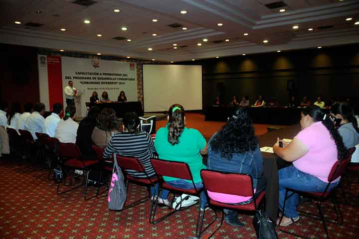 Promotores del subprograma "Comunidad DIFerente", que forma parte de las estrategias de Desarrollo Comunitario del Gobierno de Michoacán, iniciaron una capacitación intensiva con la que se pretende compartir experiencias y unificar esfuerzos con miras a impulsar y mejorar el trabajo que se realiza en 91 comunidades del estado de Michoacán para abatir el rezago social.