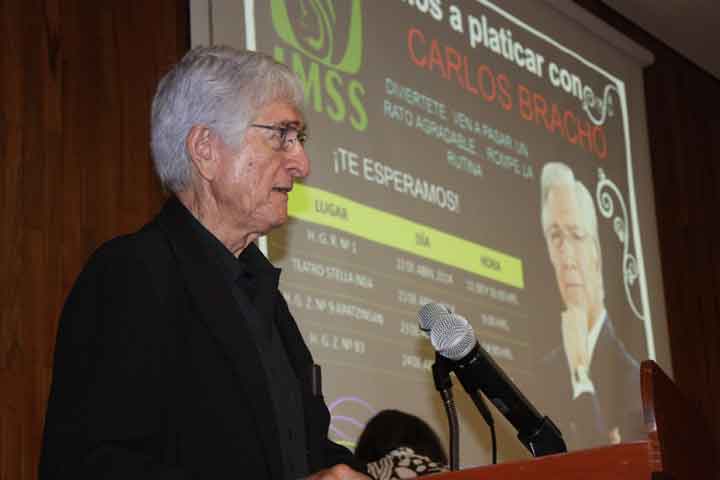 NOTICIAS 23/04/2014Carlos Bracho llama a trabajadores del IMSS a dar un "segundo esfuerzo"El actor mexicano Carlos Bracho hizo un llamado a los trabajadores del Instituto Mexicano del Seguro Social (IMSS) en Michoacán, a dar un "segundo esfuerzo", es decir, a trabajar con pasión y entrega en beneficio de los usuarios de los servicios médicos y administrativos de esta institución de salud pública.