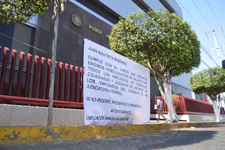 Trabajadores sindicalizados del Poder Judicial de la Federación en Michoacán (PJF), amagaron con un paro laboral, al tiempo de que exigían un incremento salarial y la destitución de su actual dirigente.
