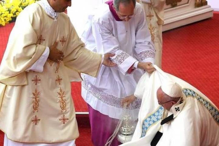 El lÃder católico no vio un escalón del palco colgante ubicado en la parte posterior del templo y cayó cuando tenÃa un incensario en la mano sin poder hacer algo para evitarlo.