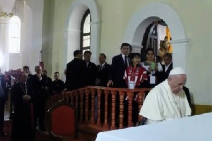 El pontífice llegó a la Catedral de San Cristóbal, sede de una de las diócesis más antiguas de América con 450 años, después de almorzar con ocho líderes indígenas en el... Ver más...