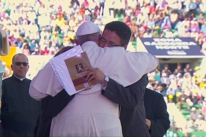 Francisco escuchó estos testimonios en el estadio Víctor Manuel Reyna, donde entre el exterior y el interior se concentraron unas 42.000 personas, según estimaciones de la ... Ver más...
