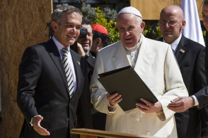 NOTICIAS 13/02/2016Jefe de Gobierno entrega llave de la CDMX al Papa En un breve acto que duró tres minutos el Papa Francisco recibió la llave de la ciudad, medalla y pergamino de huésped distinguido de huésped distinguido de manos del Jefe de Gobierno Miguel Ángel Mancera quien a su vez recibió del jerarca católico una medalla.