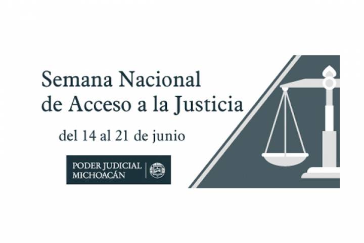 NOTICIAS 10/06/2019Realizarán "Semana Nacional de Acceso a la Justicia"Con el objetivo de aportar a la discusión y análisis de temas de actualidad vinculados al Derecho, así como de generar espacios de capacitación abiertos al público, el Poder Judicial de Michoacán y la Casa de la Cultura Jurídica de la Suprema Corte de Justicia de la Nación realizan la Semana Nacional de Acceso a la Justicia.