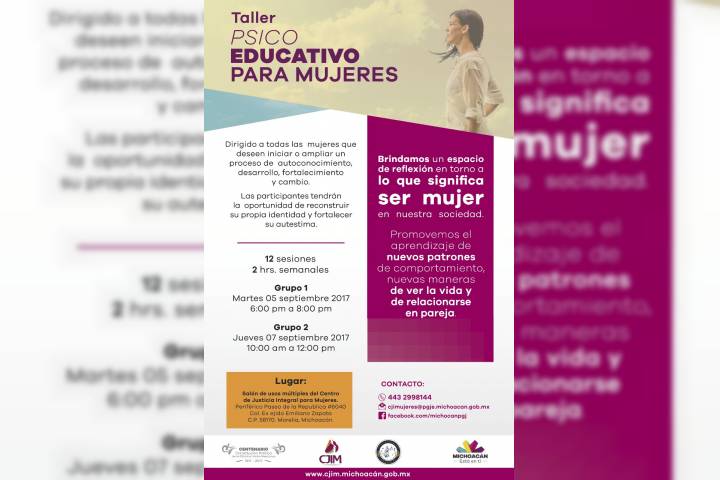 NOTICIAS 05/10/2017Imparte PGJE talleres de empoderamiento a mujeresEn el marco de los trabajos que se realizan para garantizar a las mujeres michoacanas una vida libre de violencia y su derecho de acceso a la justicia, la ProcuradurÃa General de Justicia del Estado (PGJE), a través del Centro de Justicia Integral para las Mujeres (CJIM), lleva a cabo una serie de talleres enfocados a su empoderamiento