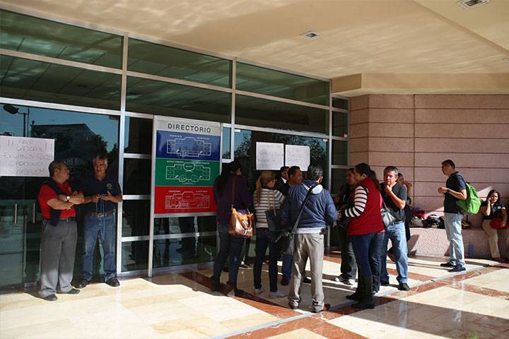 El paro inició aproximadamente a las 9 de la mañana y mantiene a los empleados afuera de su recinto de trabajo, donde han colocado cartulinas en las que exponen su inconformidad.