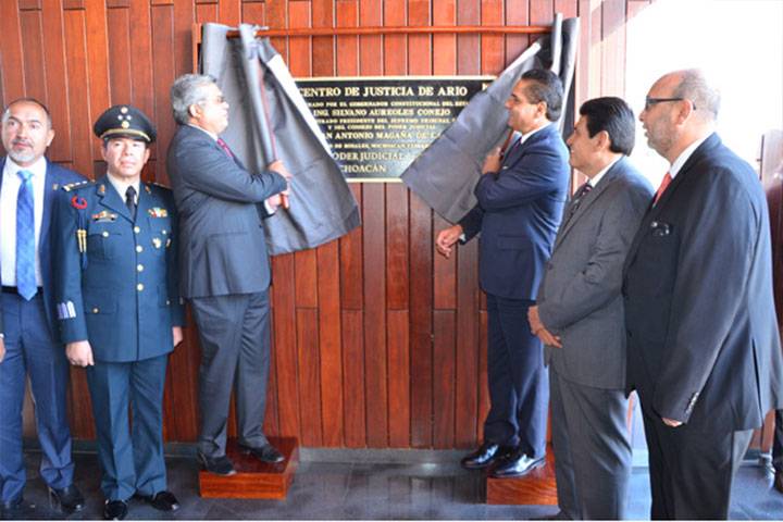 Con el objetivo de conmemorar de forma permanente el Bicentenario de la Instalación del Primer Supremo Tribunal de Justicia para la América Mexicana, el Poder Judicial de Michoacán edificó el Centro de Justicia de Ario, inaugurado el dÃa de hoy por los titulares de los tres poderes del estado.