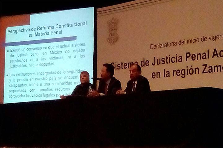 "Las michoacanas y michoacanos que habitan en la región de Zamora serán beneficiados con una justicia penal más ágil, más dinámica y más transparente", afirmó Juan Antonio Magaña de la Mora, presidente del Supremo Tribunal de Justicia y del Consejo del Poder Judicial de Michoacán, al declarar la entrada en vigor del Nuevo sistema de justicia en la región de Zamora.