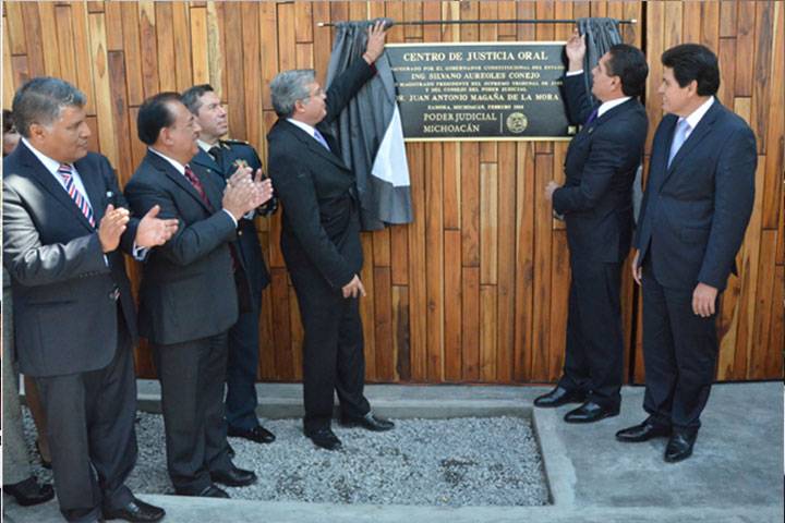 "El Nuevo sistema de justicia penal opera con infraestructura adecuada para responder a las necesidades de esta nueva forma de impartición de justicia a la ciudadanía", señaló Juan Antonio Magaña de la Mora, presidente del Supremo Tribunal de Justicia y del Consejo del Poder Judicial de Michoacán, durante la develación de placa del Centro de Justicia Oral de la Ciudad Judicial que se construye en la Región Zamora.