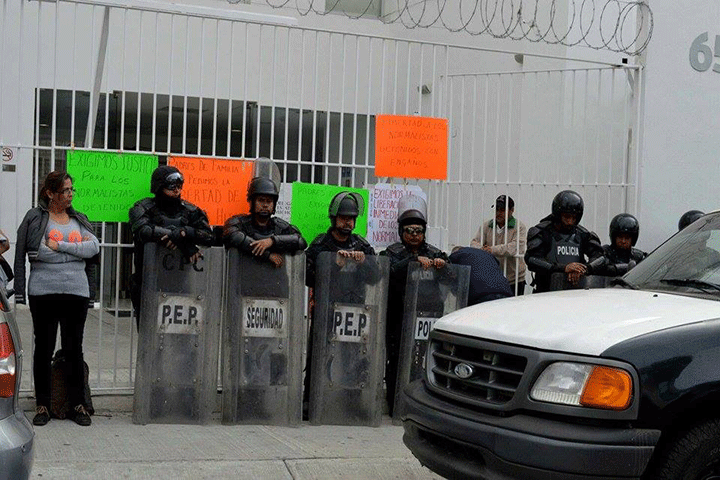 NOTICIAS 08/12/2015Continúan protestas en Morelia por detención de 52 normalistasDespués de la detención de los 52 estudiantes normalistas, acusados del robo de dos autobuses de pasajeros, delito del fuero común, quienes posteriormente fueron consignados ante un Fiscal de la Federación por Violación a la Ley Federal de Armas de Fuego y Explosivos, la mañana de este martes los padres y los compañeros de los indiciados acudieron a las afueras de las instalaciones de la delegación de la Procuraduría General de la Repúb... Ver más...