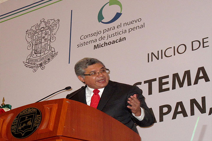 "Esta nueva forma de impartir justicia que entró en vigencia en Michoacán, es oral y de cara a la sociedad, en donde cualquier ciudadano puede asistir a una sala de audiencia -sea parte o no del juicio - y presenciar la forma en que resuelven los jueces" señaló Juan Antonio Magaña de la Mora, presidente del Supremo Tribunal de Justicia y del Consejo del Poder Judicial de Michoacán.