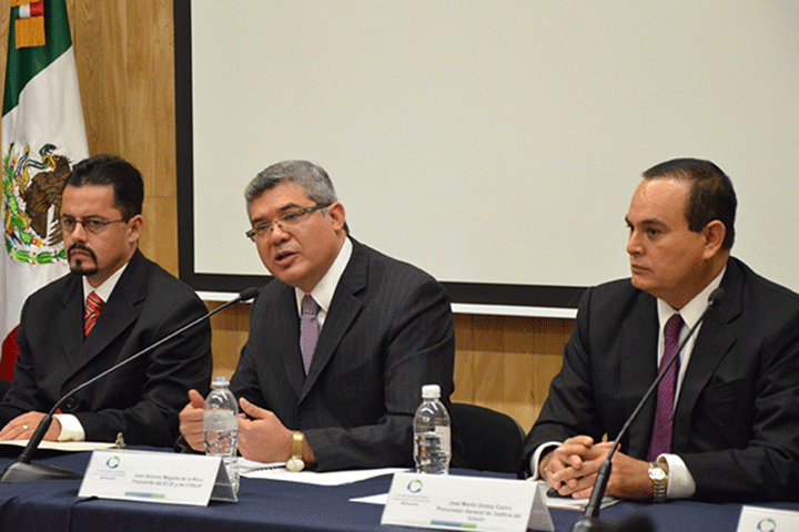 NOTICIAS 24/11/2014Se realiza la 52a sesión ordinaria del Consejo para el NSJP?En la 52 sesión ordinaria del Consejo para el Nuevo Sistema de Justicia Penal en Michoacán su presidente, Juan Antonio Magaña de la Mora, exhortó a las instituciones operadoras, instituciones educativas, medios de comunicación y sociedad en general para sumar esfuerzos, a tres de meses de la entrada en vigor del sistema penal acusatorio en las regiones de Morelia y Zitácuaro.