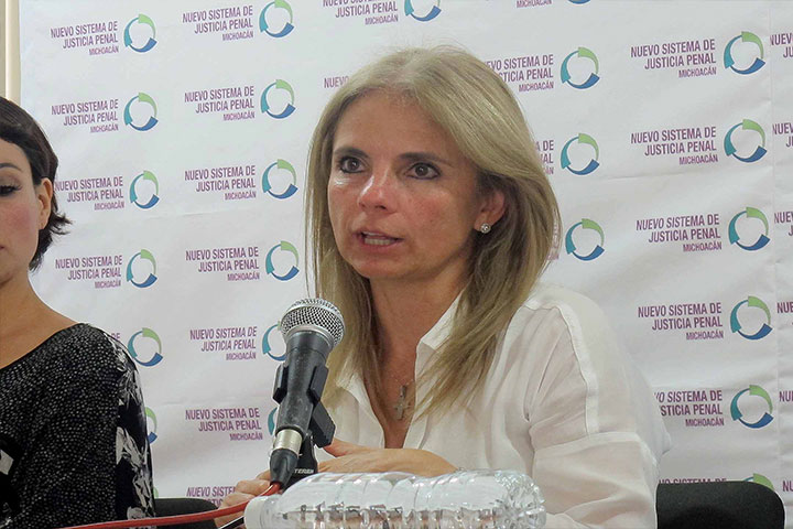 "La implementación del Nuevo Sistema de Justicia Penal en Michoacán requiere de la capacitación de los operadores, del conocimiento ciudadano de los derechos y ventajas que ofrece este nuevo sistema y del trabajo conjunto de las instituciones encargadas de la procuración y administración de justicia", manifestó María de los Ángeles Llanderal Zaragoza.