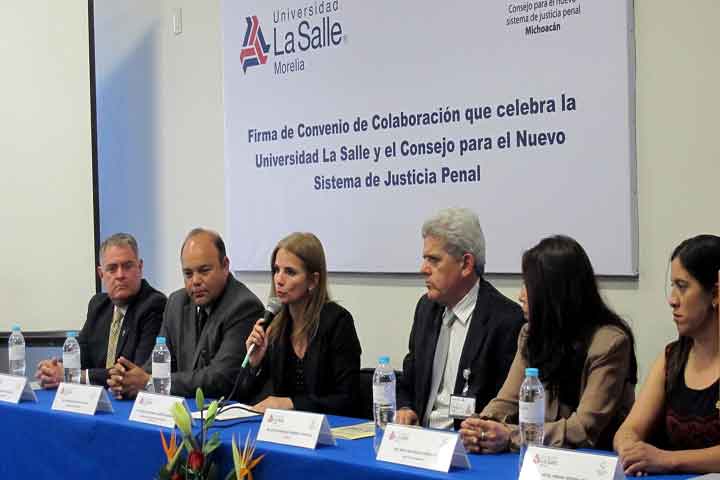El Consejo para el Nuevo sistema de Justicia Penal en Michoacán y La Universidad La Salle, campus Morelia, refrendaron el convenio de colaboración con la finalidad de seguir realizando actividades enfocadas en la implementación del Sistema Penal Acusatorio y Adversarial en el Estado.