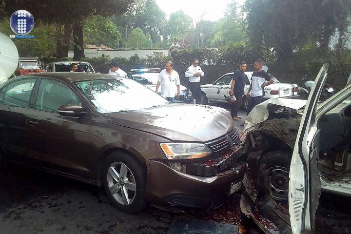 Al principio, la sangre escurría por todas partes, se presagiaba algo grave; al final, se comprobó que eran vísceras de res que una camioneta transportaba cuando ocurrió el choque un auto y posterior impacto con una pipa de agua estacionada junto al jardín Fray Juan de San Miguel, frente al Parque Nacional.