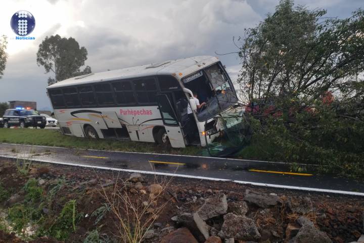 Un autobús de pasajeros de la línea Purhépechas se estrelló contra un árbol a un costado de la Carretera Morelia - Salamanca sin que por fortuna se reportaran personas lesionadas.