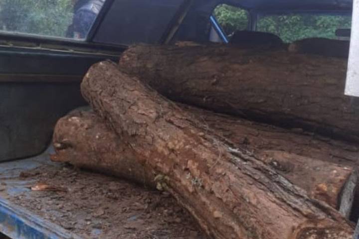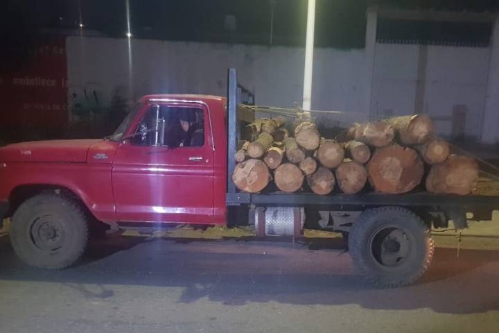 Agentes de la Policía Michoacán implementaban labores operativas en la demarcación cuando ubicaron la unidad marca Ford cargada con 18 troncos de madera, sin que se presentara alguna persona para acreditar su legal procedencia.