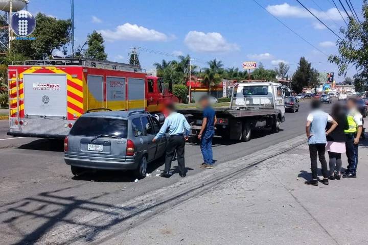 Un vehículo compacto se salió de control, chocó contra un poste de madera y lo partió, percance que ocurrió a la orilla de la Calzada La Huerta, el cual dejó 2 heridos leves.