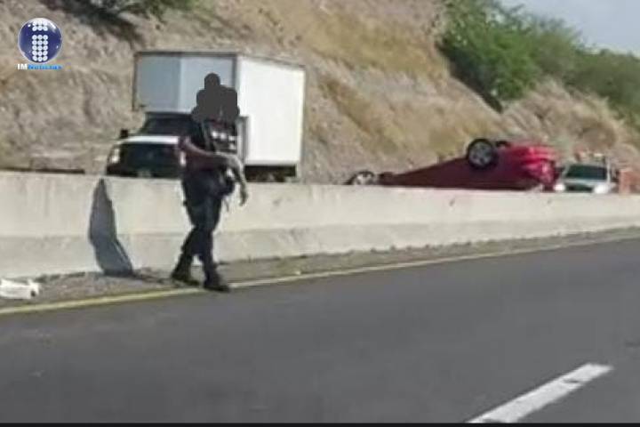 Un automóvil se volcó sobre la carretera federal Cuatro Caminos- Apatzingán, lo cual provocó múltiples daños materiales, en el municipio de Carácuaro.