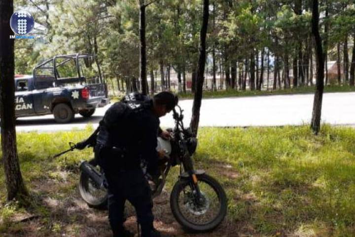 Agentes de la Policía Michoacán efectuaban recorridos de vigilancia en la localidad de Ihuatzio, cuando se percataron de la unidad marca Italika, en aparente estado de abandono, por lo que procedieron a inspeccionarla.