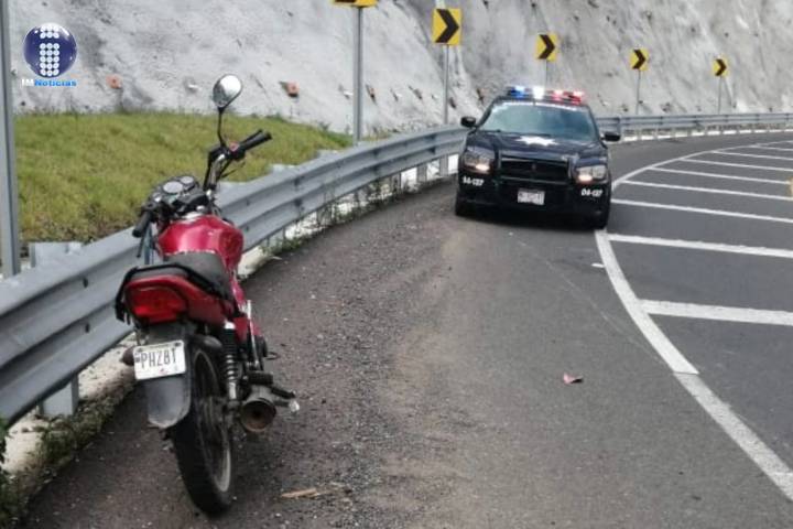Contactos policiales y de rescate mencionaron que el percance sucedió la mañana de este martes. Se apreció que el motociclo siniestrado es de color rojo, con placa PHZBT.