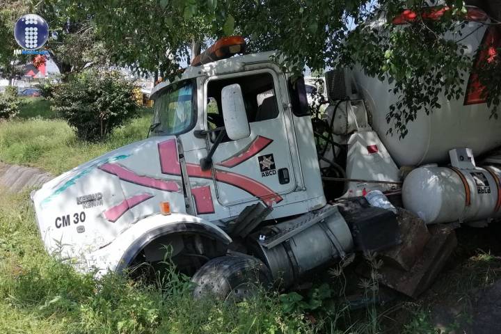 NOTICIAS 27/09/2019Revolvedora de concreto cae a cuneta del periférico de Morelia