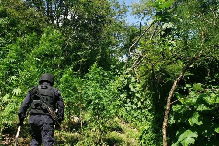 En el marco de la estrategia implementada para inhibir el delito, personal de la Secretaría de Seguridad Pública (SSP), localizó y destruyó 3 mil 500 plantas de hierba verde, con las características de la marihuana, en esta población.