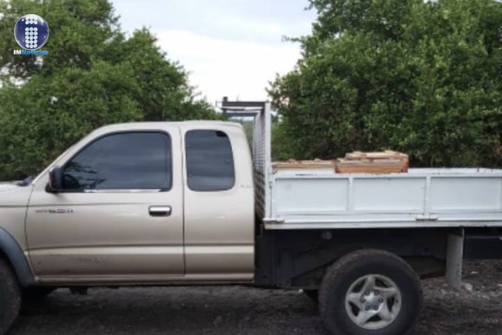Elementos de la Policía Michoacán efectuaban una acción operativa en la comunidad Tierras Blancas, se ubicó en las inmediaciones de una huerta de limón, la unidad de la marca Toyota, tipo Tacoma, la cual al ser inspeccionada, se determinó que cue... Ver más...