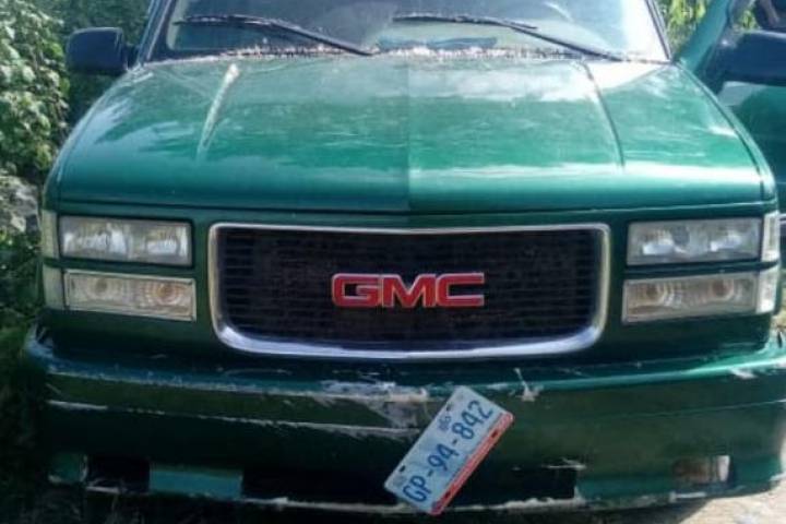 Durante labores de patrullaje, agentes de la Policía Michoacán ubicaron sobre una brecha aledaña a la comunidad el vehículo marca GMC, color verde, procediendo a inspeccionarlo.