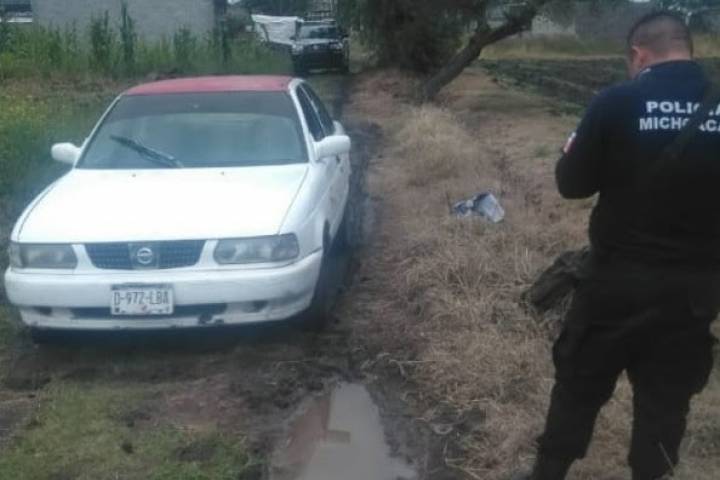 Derivado de recorridos de vigilancia, elementos de la PolicÃa Michoacán localizaron la unidad marca Nissan, mal estacionado a la orilla de la carretera, por lo que procedieron a inspeccionarla conforme a protocolos.