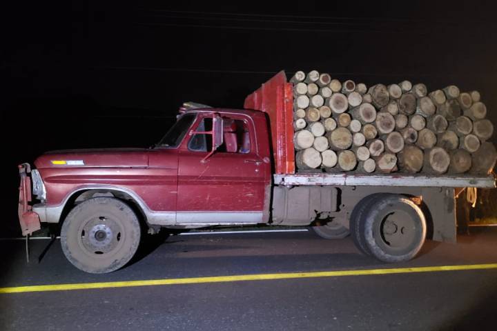 Elementos de la Policía Michoacán efectuaban una acción operativa en la localidad de La Yerbabuena, lugar donde se localizó un camión que transportaba madera en rollo.