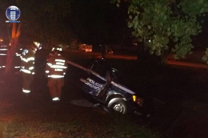 Una patrulla terminó en una cuneta del camellón que divide los carriles de ida y vuelta del Libramiento República en esta ciudad de Morelia, a consecuencia de lo sucedido el chófer resultó herido. Al parecer la unidad también colisionó contra un árbol o un poste, dijeron fuentes policiacas.