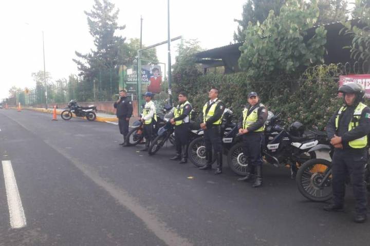 Elementos de Tránsito y Vialidad, realizan labores para agilizar el flujo vehicular, ante la presencia ciudadanos que se encuentran en un parque localizado en la zona, llevando a cabo actividades de reforestación.