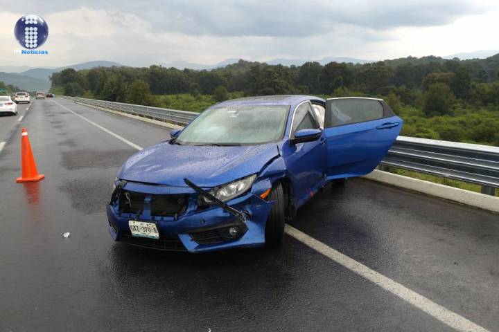 Tres personas resultaron lesionadas, luego de que el conductor de un auto perdiera la dirección del volante, al parecer debido al piso mojado y se impactara contra la barra de contención, cerca de la caseta de cobro de Zirahuén, de la llamada autopista Siglo XXI.