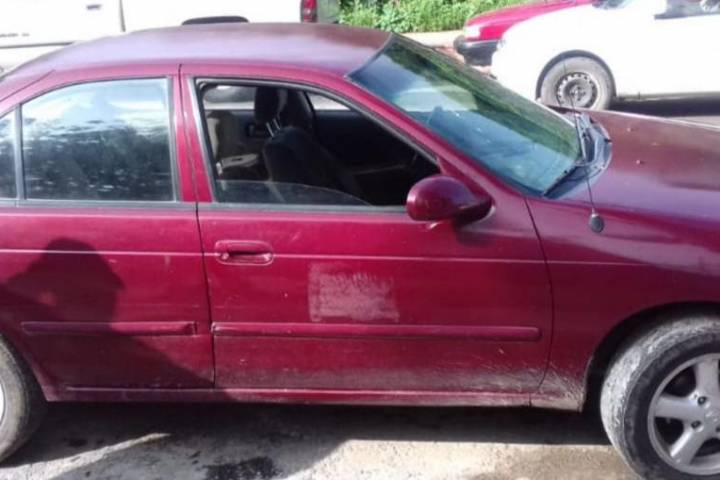 Derivado de labores de patrullaje para inhibir actos delictuosos en la zona, elementos de la Policía Michoacán localizaron la unidad marca Nissan, color morado, sobre la calle Arcadio Huitrón Jiménez.