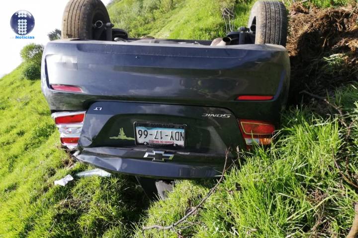 Los dos ocupantes de un automóvil resultaron heridos levemente al volcar dicha unidad, misma que terminó fuera de la cinta asfáltica, trascendió en la labor noticiosa. La situación movilizó a las corporaciones policiacas y de rescate.
