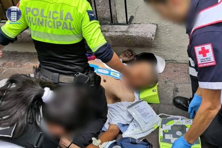 Oficiales de la Policía de Morelia y paramédicos de la Cruz Roja (CR) auxiliaron y salvaron a un adulto mayor que sufrió un paro cardíaco cuando caminaba en el Centro Histórico de esta ciudad.