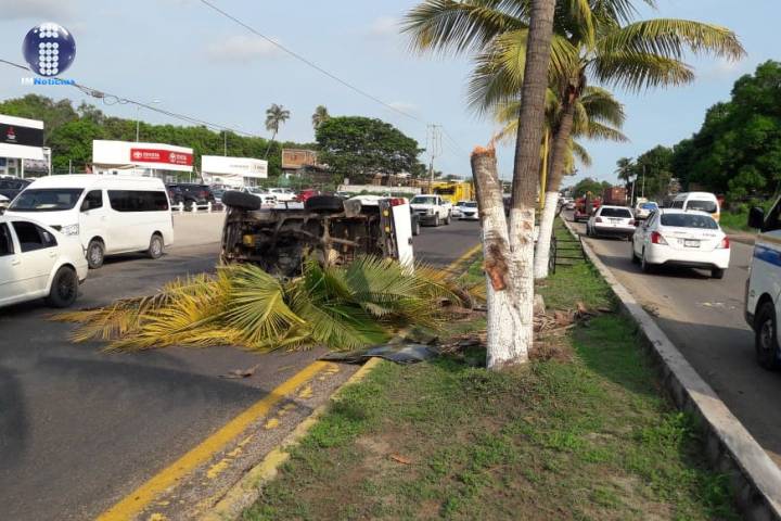 La tarde de este sábado una camioneta fue abandonada, luego de que chocara contra una palmera y volcara sobre la avenida Las Palmas en esta ciudad de Lázaro Cárdenas, sin que se tenga reporte de personas heridas a raíz del acontecimiento.