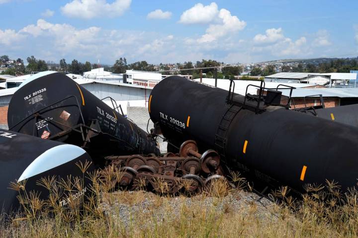 NOTICIAS 31/10/2018Vuelcan 6 contenedores de combustóleo remolcados por el tren; hay 3 heridos