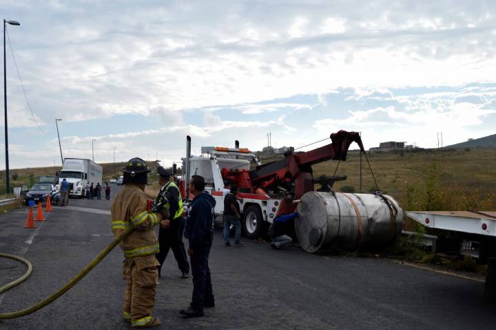 Una pipa, que de acuerdo con contactos oficiales trasladaba amoníaco, volcó al protagonizar un choque contra un vehículo particular, milagrosamente el percance no dejó lesionados, refirieron las fuentes. A consecuencia del accidente la autopista "Siglo XXI" estuvo cerrada por un largo rato en el punto donde sucedió todo.