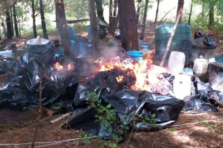Los elementos de la Policía Michoacán realizaban trabajos operativos en el cerro de Angahuan-Corupo donde ubicaron un campamento; al inspeccionar el lugar se encontraron cuatro tanques de gas L.P., ocho bult... Ver más...