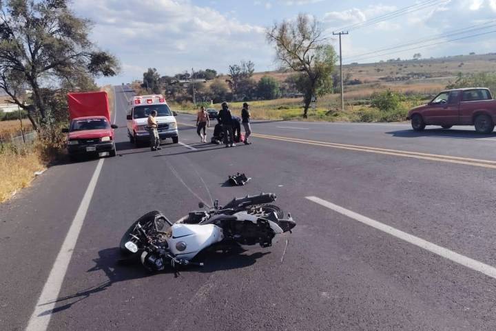 pareja de jóvenes resultó lesionada al sufrir un accidente cuando viajaban a bordo de una motocicleta sobre la carretera Numarán - La Piedad.