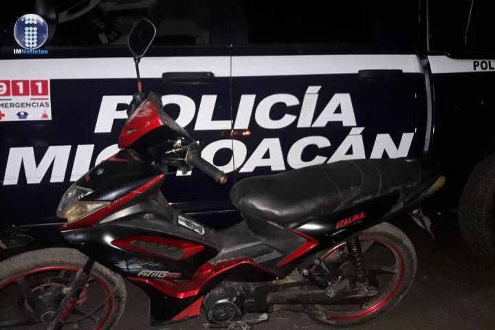 Agentes de la PolicÃa Michoacán llevaban a cabo patrullajes de vigilancia, cuando localizaron una motocicleta marca Italika, en aparente estado de abandono sobre la calle Benito Juárez en la colonia Plan de Ayala.