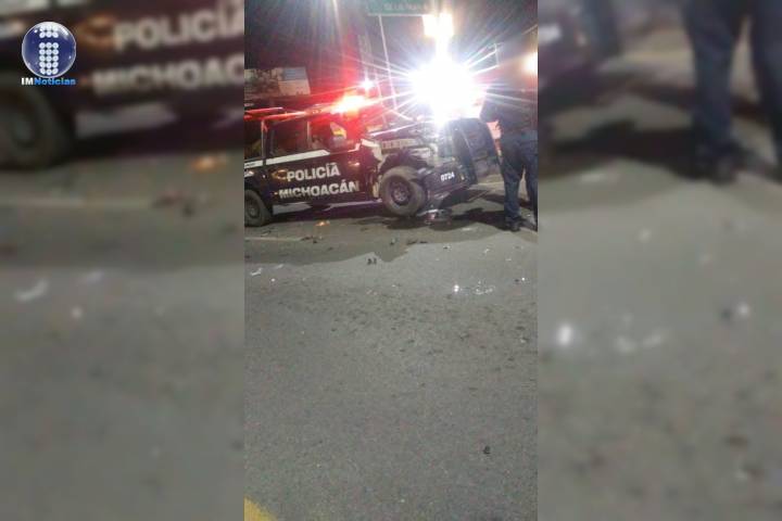 Una patrulla de la Dirección de Seguridad Pública de Apatzingán y un vehículo particular protagonizaron un choque sobre la carretera hacia Cuatro Caminos. El incidente solo dejó daños materiales, refirieron contactos de rescate.