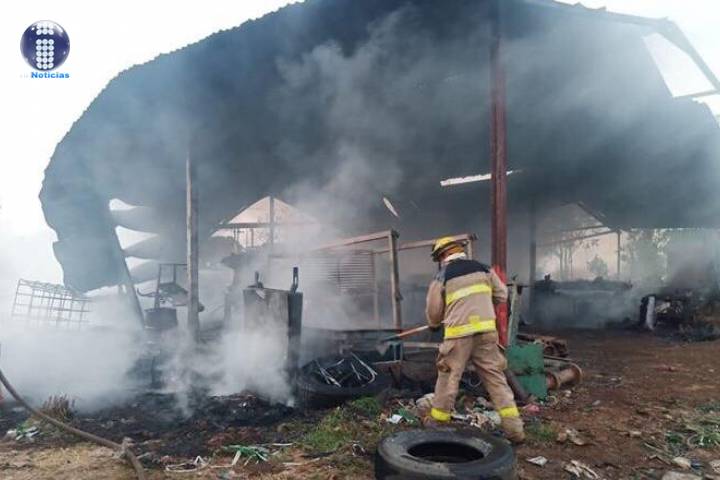 Bomberos Voluntarios y Profesionales de Uruapan combatieron un incendio que se registró en una bodega de reciclaje de cartón, ubicada en la colonia 18 de Marzo.