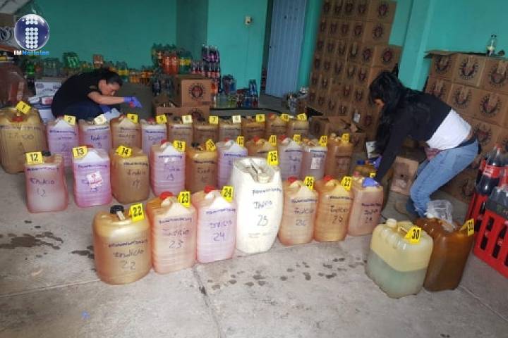 Elementos de la Guardia Nacional aseguraron unos bidones de hidrocarburo y los pusieron a disposición de la Fiscalía General de la República (FGR) en Michoacán, para iniciar la investigación correspondiente, en Zamora.