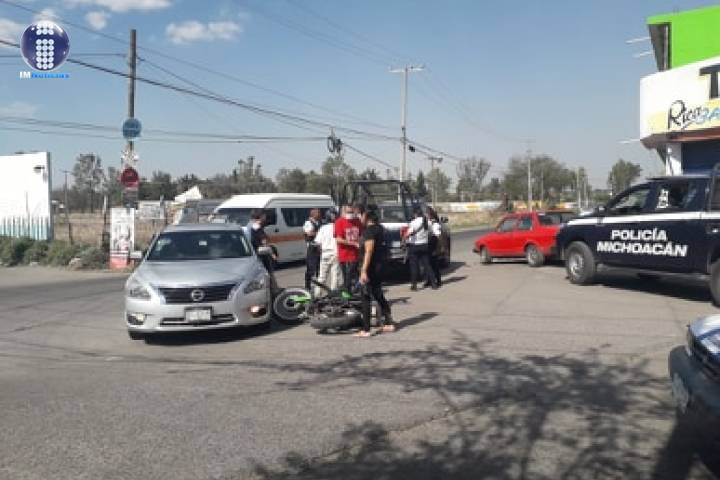 Un motociclista resultó levemente herido en un choque protagonizado por su unidad y un automóvil, el cual se registró este sábado en la entrada al fraccionamiento Metrópolis, ubicado en este municipio de Tarímbaro, según los datos obtenidos por esta redacción.