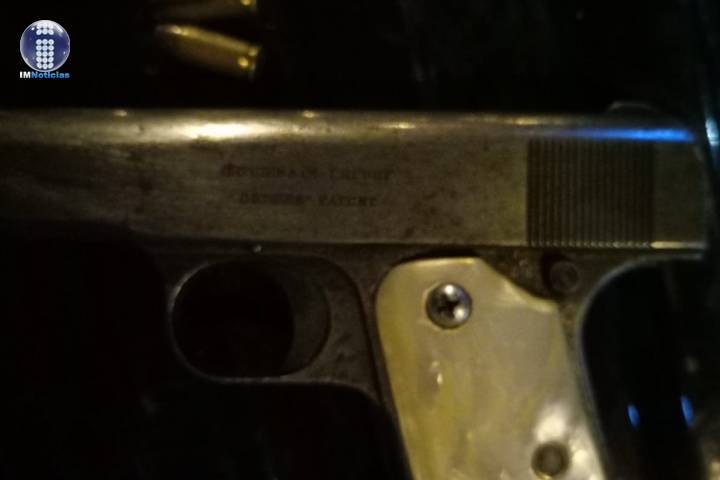 Derivado de una acción operativa, elementos de la Policía Michoacán detuvieron en la calle La Yerbabuena a José M., luego de localizar entre sus pertenencias el arma de fuego calibre .9 mm.