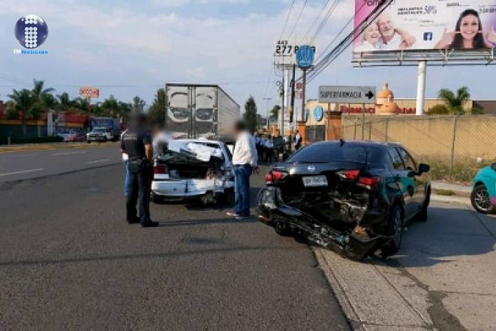 Dos personas resultaron levemente lesionadas tras un choque por alcance en el que participaron un tráiler y dos autos compactos. El accidente sucedió la tarde de este viernes sobre la Calzada La Huerta, en la ciudad de Morelia.