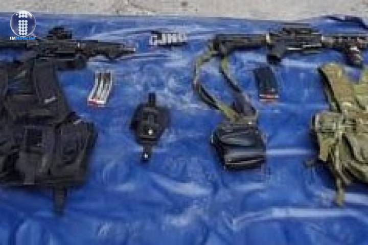 Resultado de un operativo coordinado entre personal de las secretarías de Seguridad Pública (SSP), y de la Defensa Nacional (SEDENA), se logró la detención de dos personas del sexo masculino, en posesión de ocho fusiles, más de 900 cartuchos y un vehículo con reporte de robo.